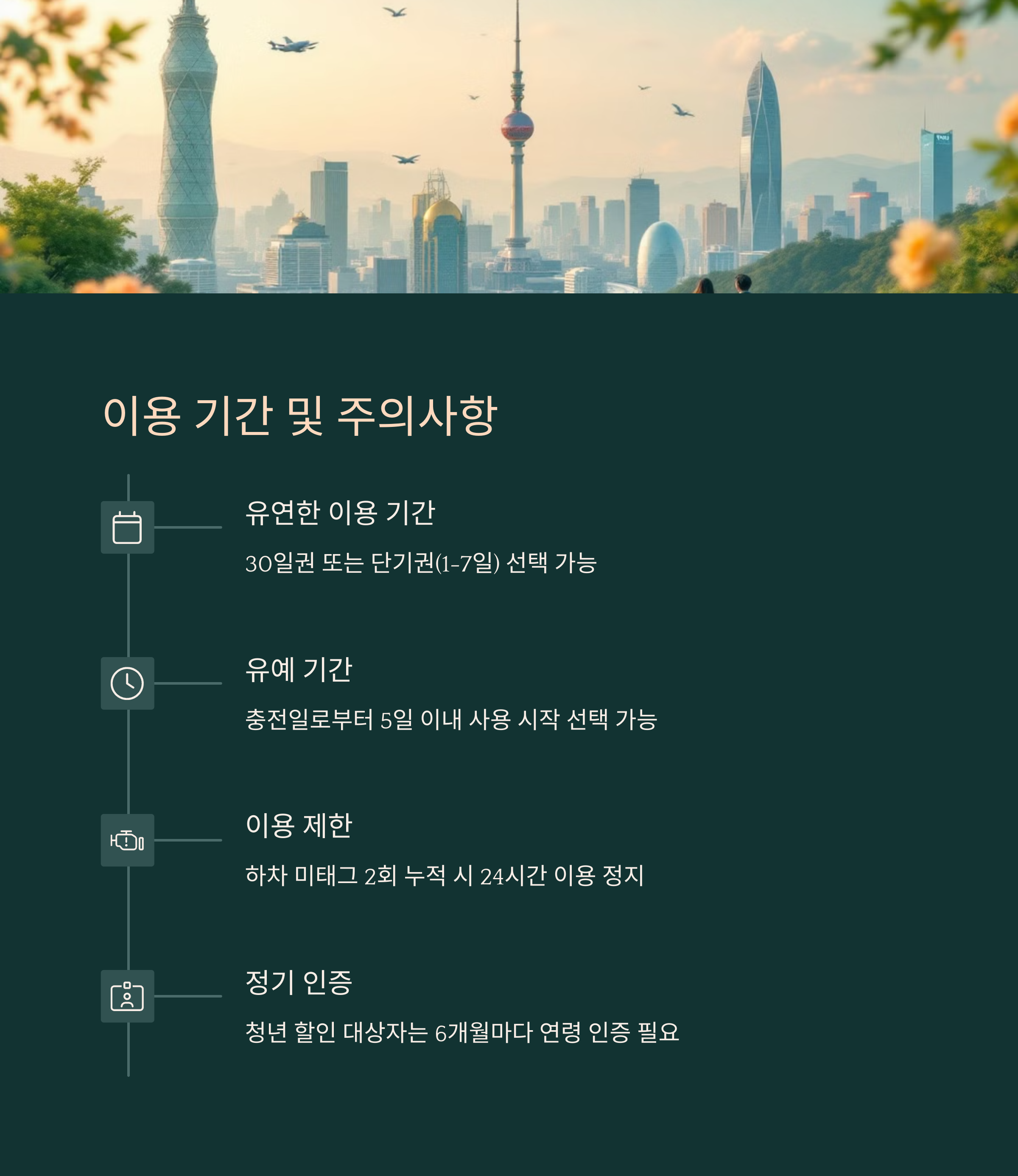 이용 횟수에 상관없이 일정 금액만 내면 되니까, 하루 왕복만 해도 금방 본전 뽑는 셈이죠! 😎