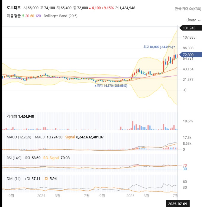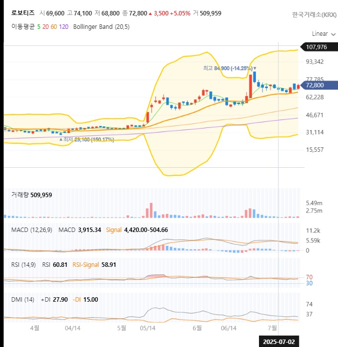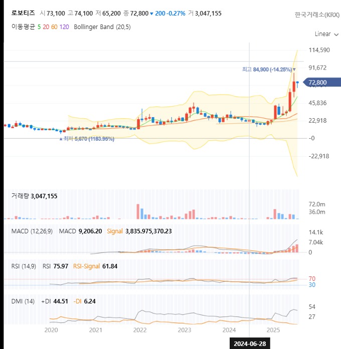 펀더멘탈이 기업의 체력이라면, 차트는 시장 참여자들의 심리를 보여주는 지도입니다. 로보티즈의 차트는 지금 어떤 이야기를 하고 있을까요?