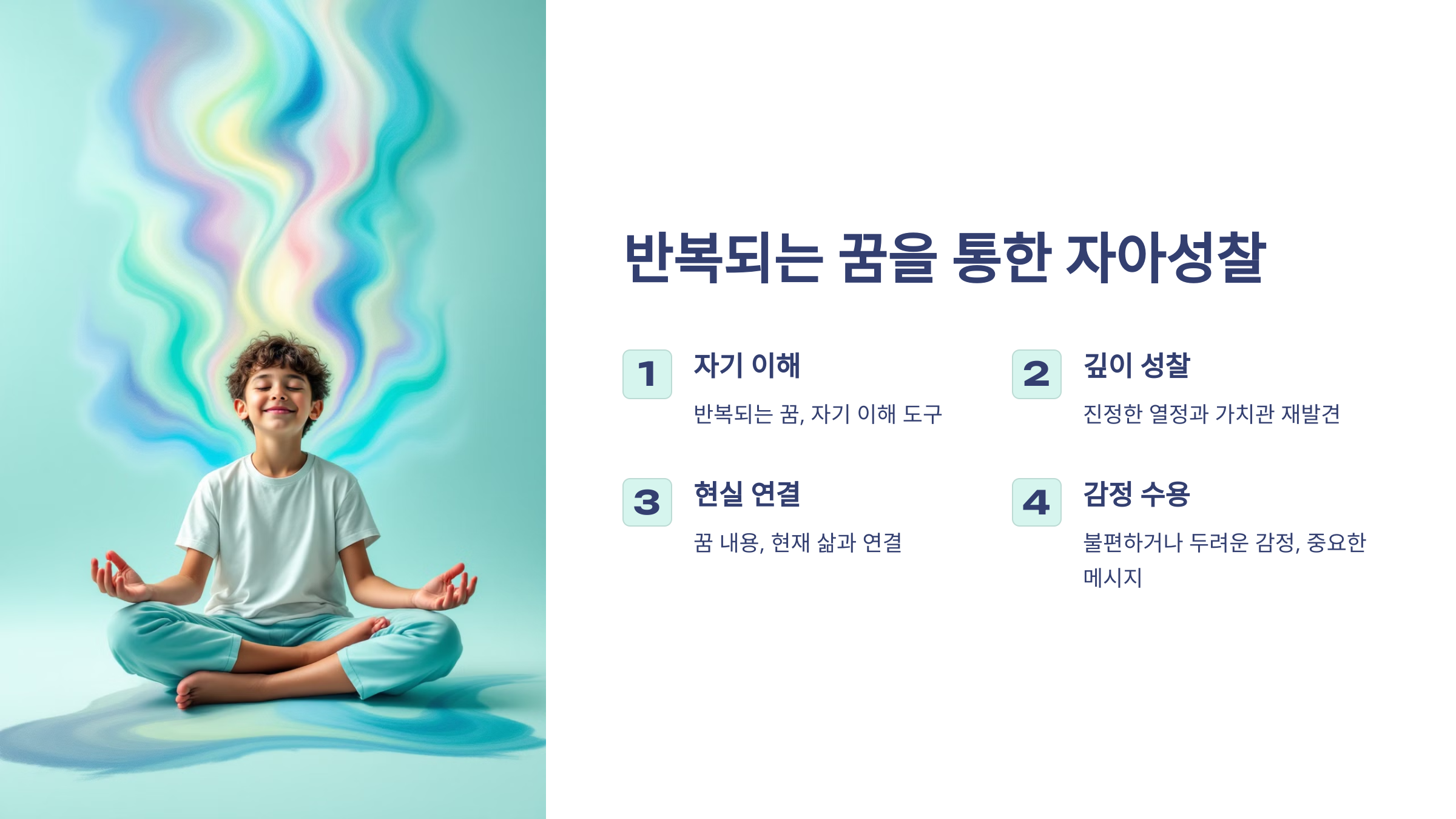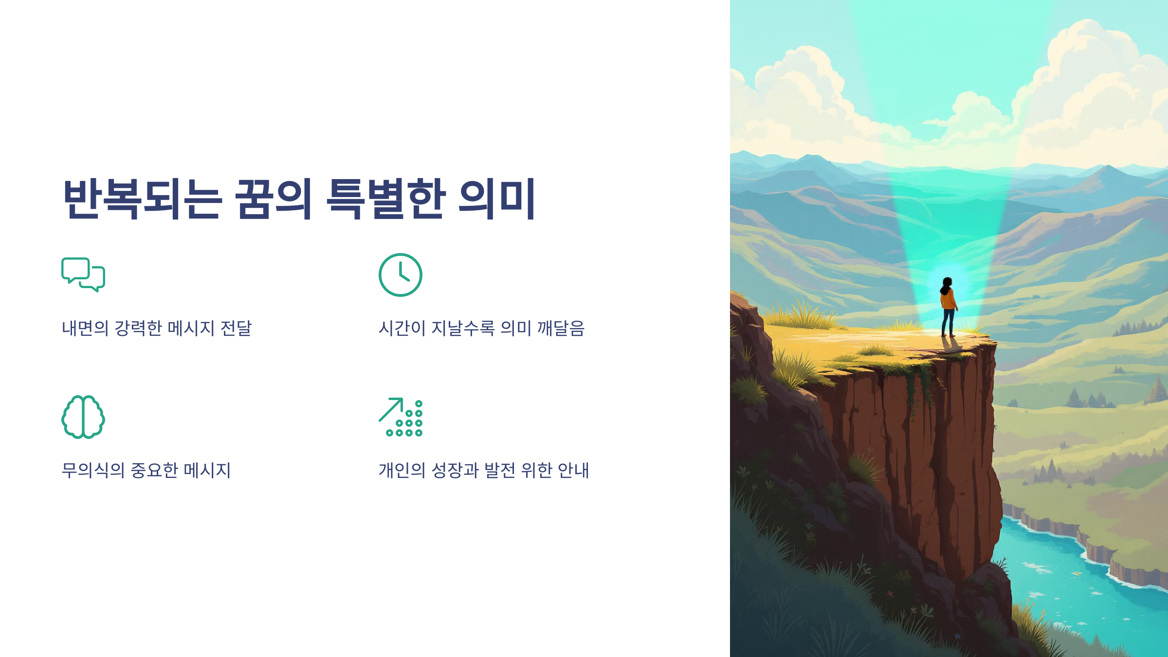 반복되는 꿈은 자기 자신을 더 깊이 이해하는 중요한 도구가 될 수 있습니다.