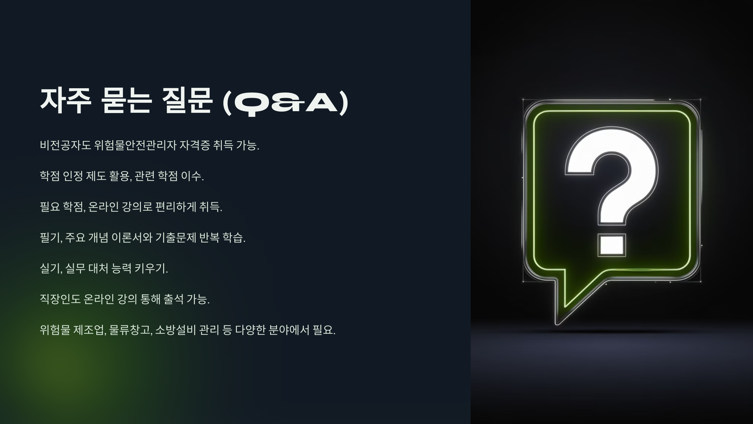 Q1. 비전공자도 위험물안전관리자 자격증을 취득할 수 있나요?