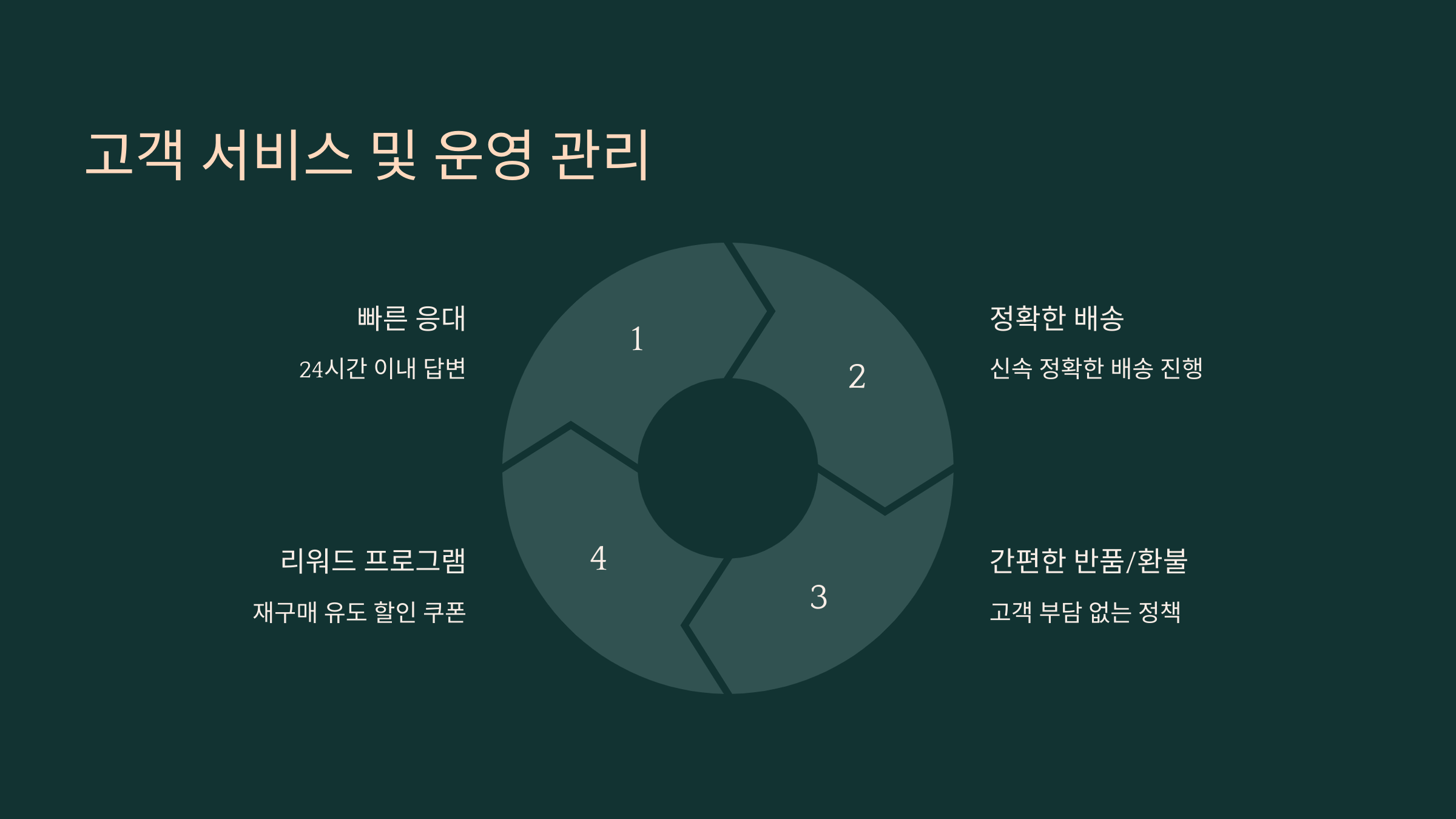 - 🔄 간편한 반품/환불: 고객이 부담 없이 반품할 수 있도록 정책 마련