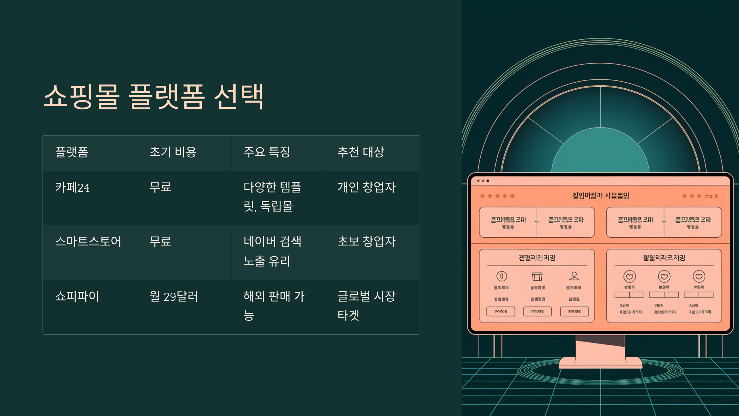 이제 쇼핑몰을 운영할 플랫폼을 선택하는 방법을 알아볼게요! 🏗