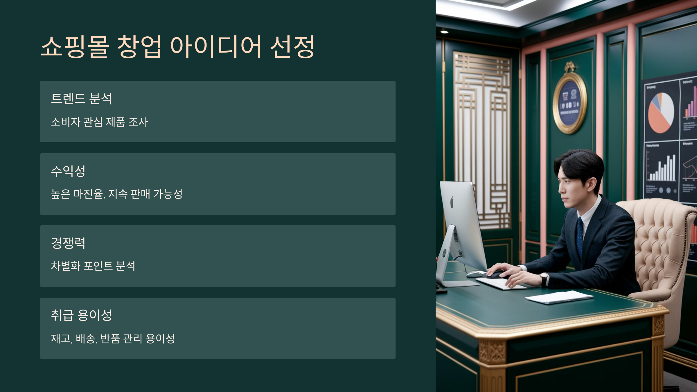 쇼핑몰 창업의 첫 단계는 어떤 상품을 판매할지 결정하는 것이에요. 내가 생각했을 때, 성공적인 쇼핑몰을 운영하려면 시장에서 수요가 높고 차별화된 제품을 선정하는 것이 중요해요. 경쟁이 치열한 시장에서는 단순한 판매보다는 브랜드 스토리와 컨셉이 있어야 해요.