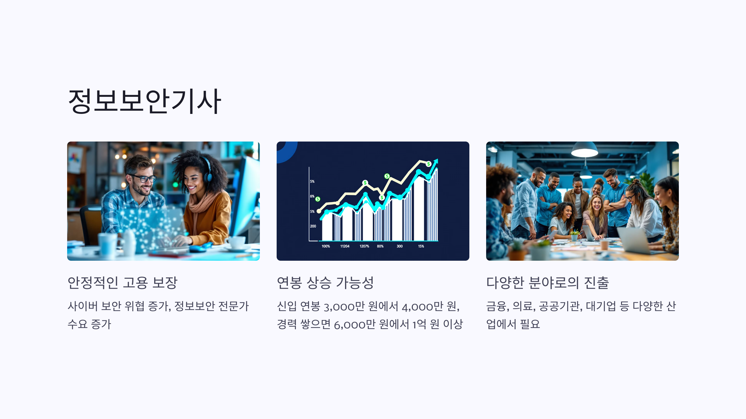 - 연봉 상승 가능성: 정보보안기사 자격증을 소지한 신입사원의 연봉은 3,000만 원에서 4,000만 원 사이이며, 경력을 쌓아가면서 연봉은 6,000만 원에서 1억 원 이상으로 상승할 수 있어요. 특히 금융권이나 IT 대기업에서는 연봉이 더욱 높아질 가능성이 큽니다.
