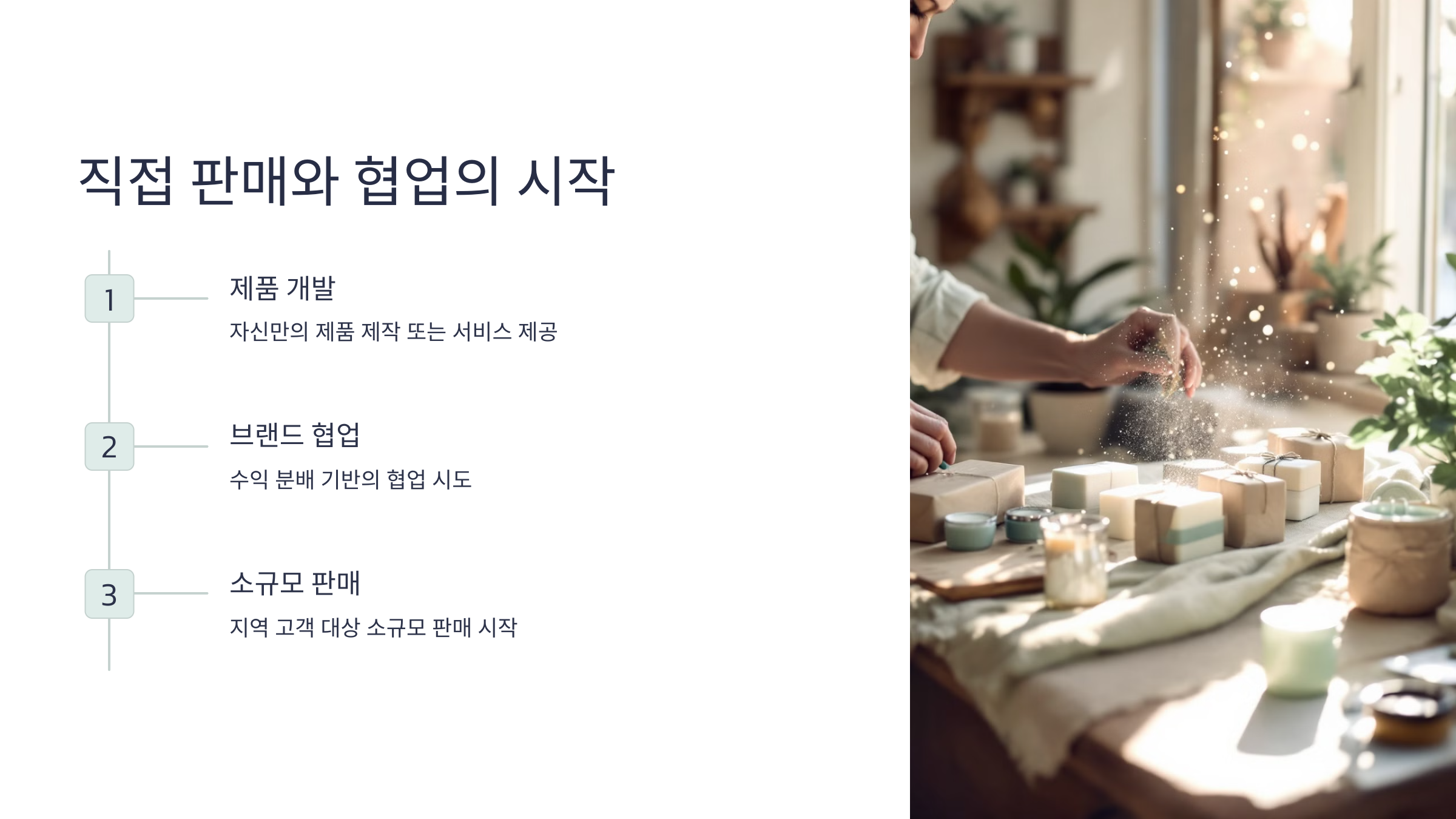 자신만의 제품을 제작하거나 서비스 제공을 고려해보세요.