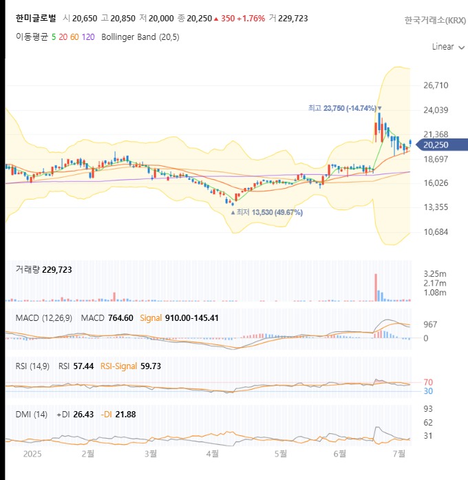 | HMM 주가 분석: 25,000원 돌파 시나리오 (펀더멘탈, 기술적 분석 총정리) (2) | 2025.07.07 |