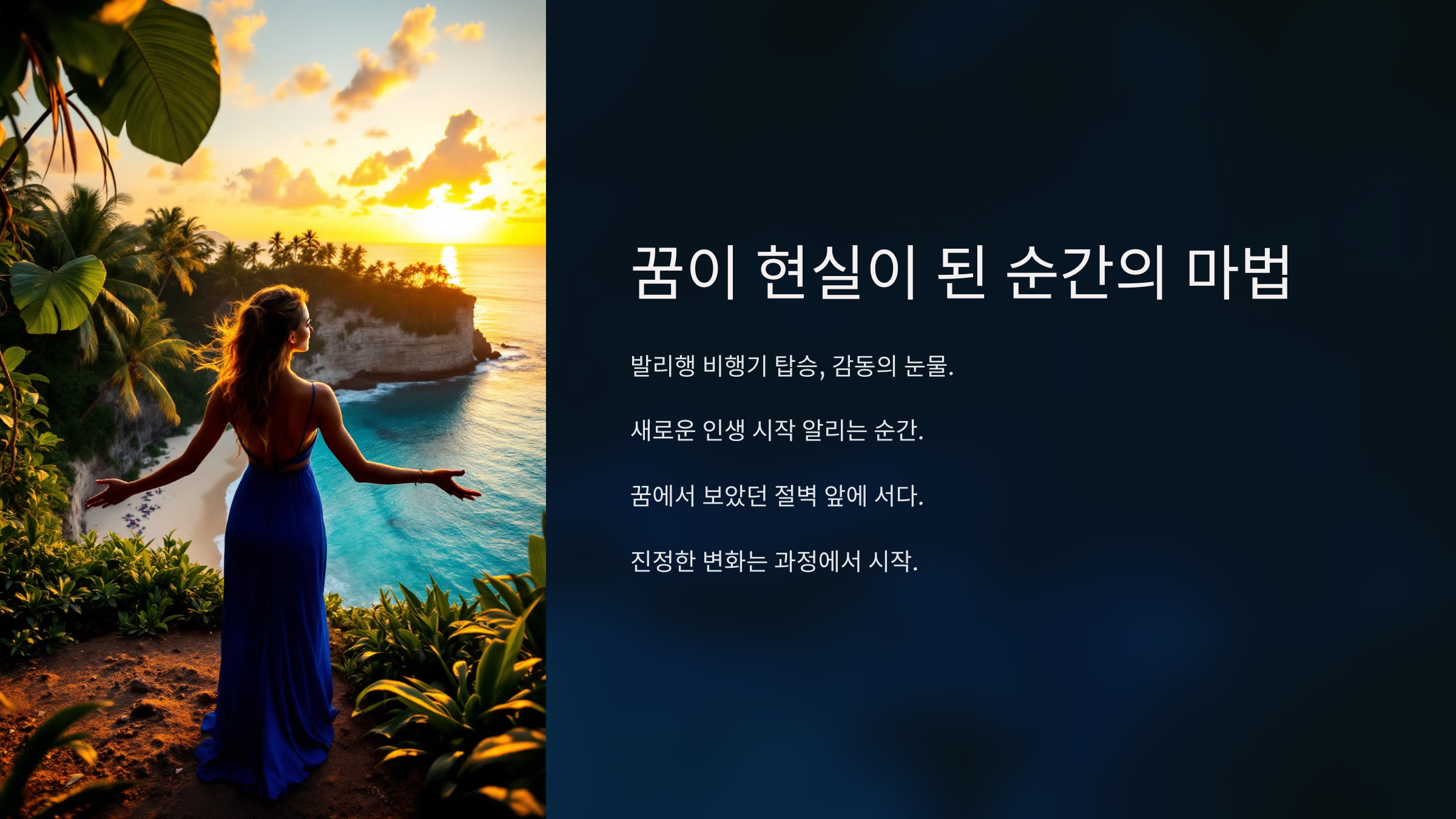 창밖으로 달빛이 스며드는 새벽 3시, 스마트폰을 켜고 메모장을 열었습니다. "지금 이 순간이 바로 시작이다." 떨리는 손으로 적은 첫 문장이었죠. 꿈에서 만난 발리의 풍경이 마음속에 깊은 울림을 주었고, 그동안 미뤄두었던 질문들이 물밀듯이 밀려왔습니다.