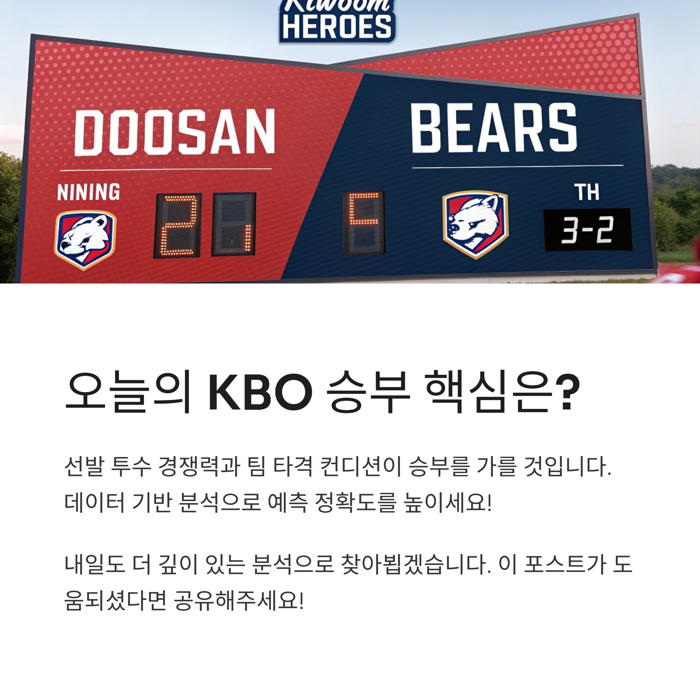 오늘 KBO 경기 승부예측 한눈에 보기! 📝