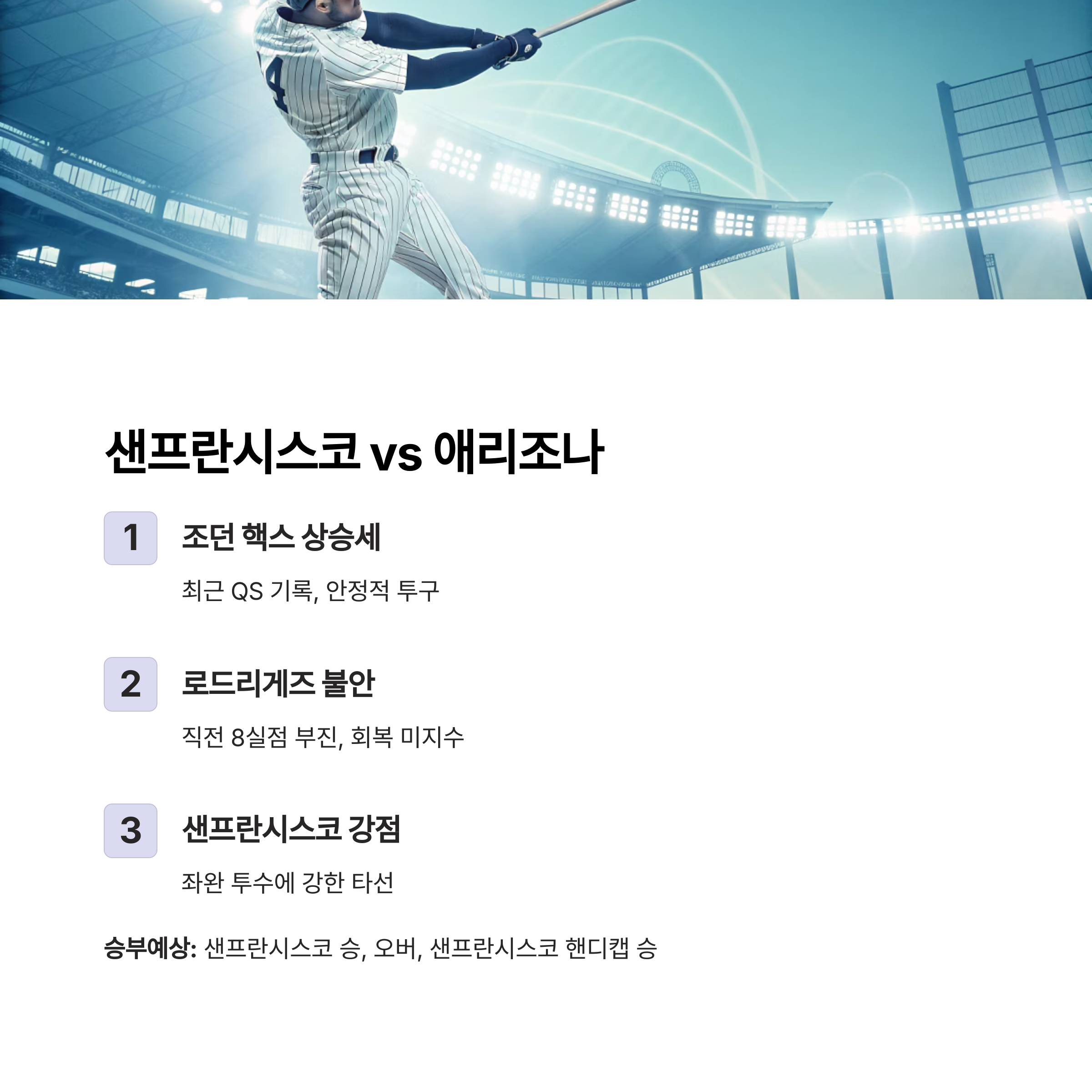 따라서 선발의 상성, 홈-원정 성향, 타선 흐름의 균형적 시각이 필요한 날입니다.