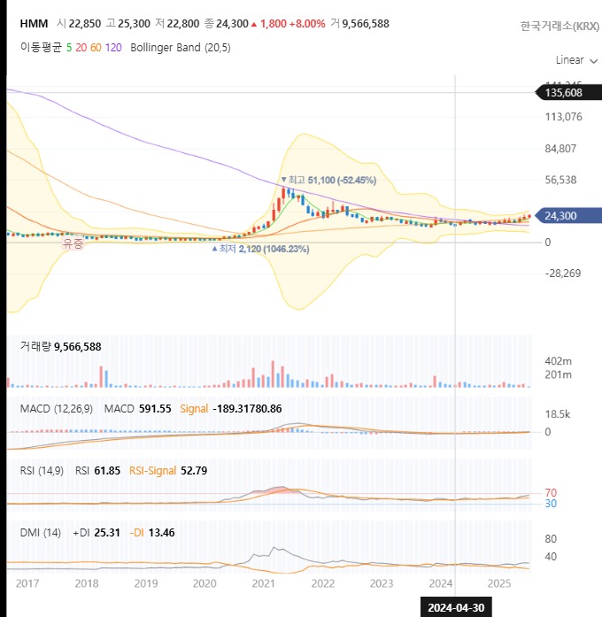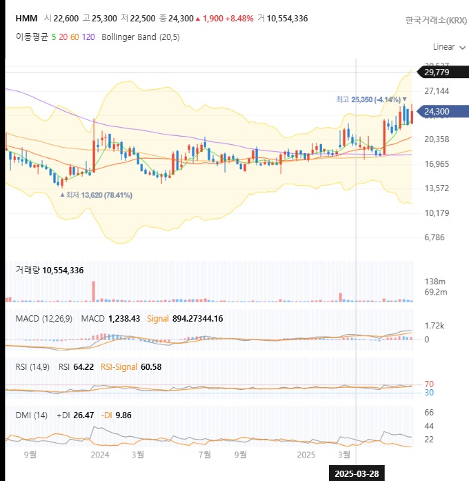 해운업황이 꺾일 거라는 전망과 미국의 관세 정책 불확실성 같은 걱정스러운 소식들이 들려오는 와중에, 주가는 오히려 힘을 내는 듯한 모습인데요. 그래서 오늘은 HMM에 대해 속 시원하게 파헤쳐 보는 시간을 갖겠습니다. 이 회사가 과연 믿고 갈 만한 펀더멘탈을 가졌는지, 그리고 차트는 우리에게 어떤 힌트를 주고 있는지 함께 살펴보시죠! 😊