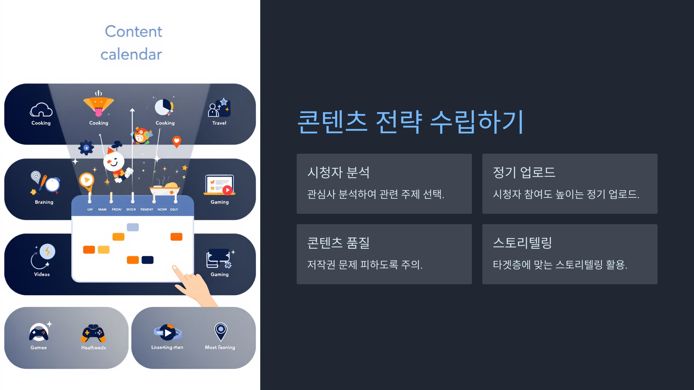 정기적으로 업로드하는 일정이 시청자 참여도를 높입니다.