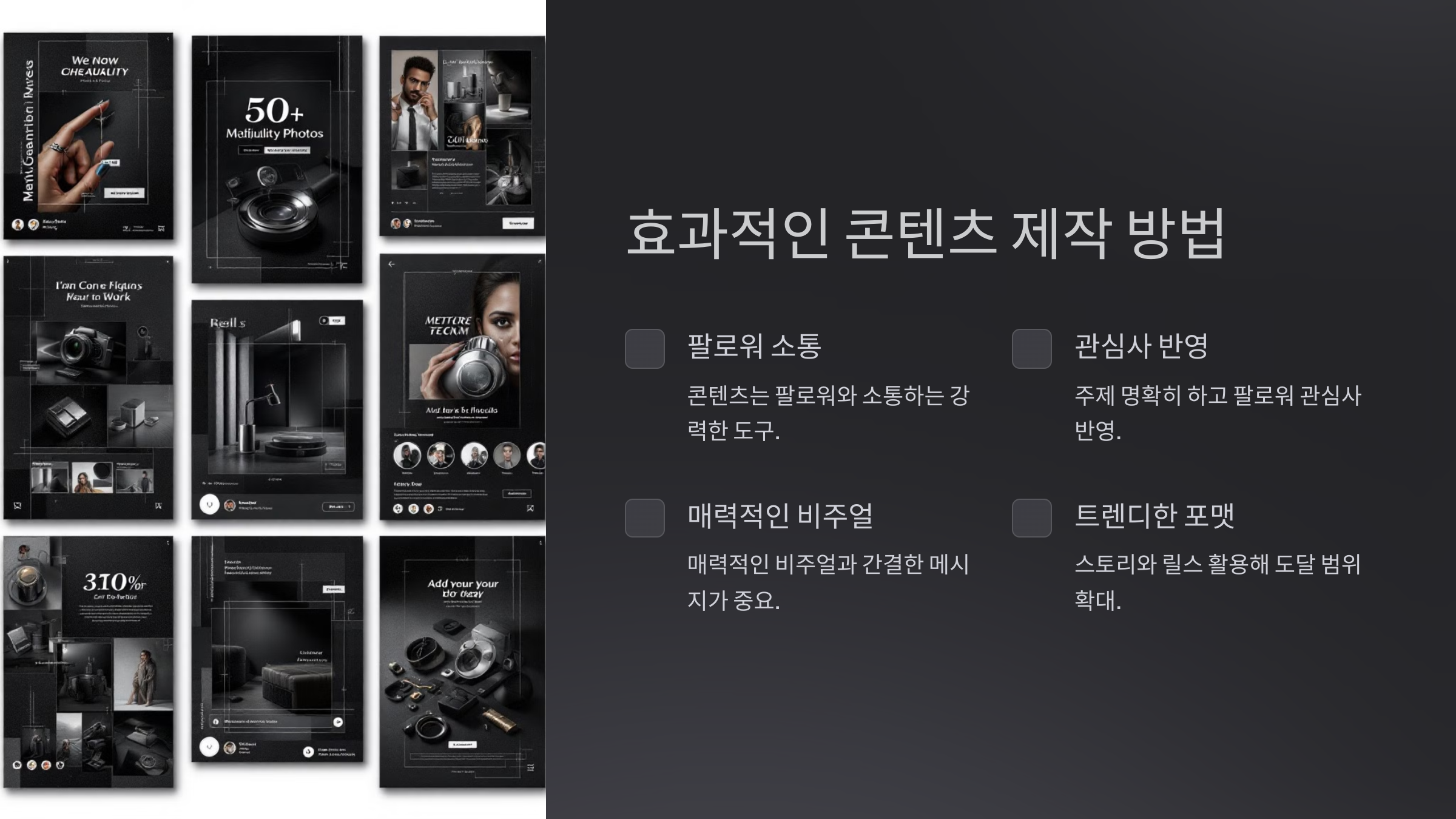 매력적인 비주얼과 간결한 메시지가 성공적인 콘텐츠의 핵심입니다.