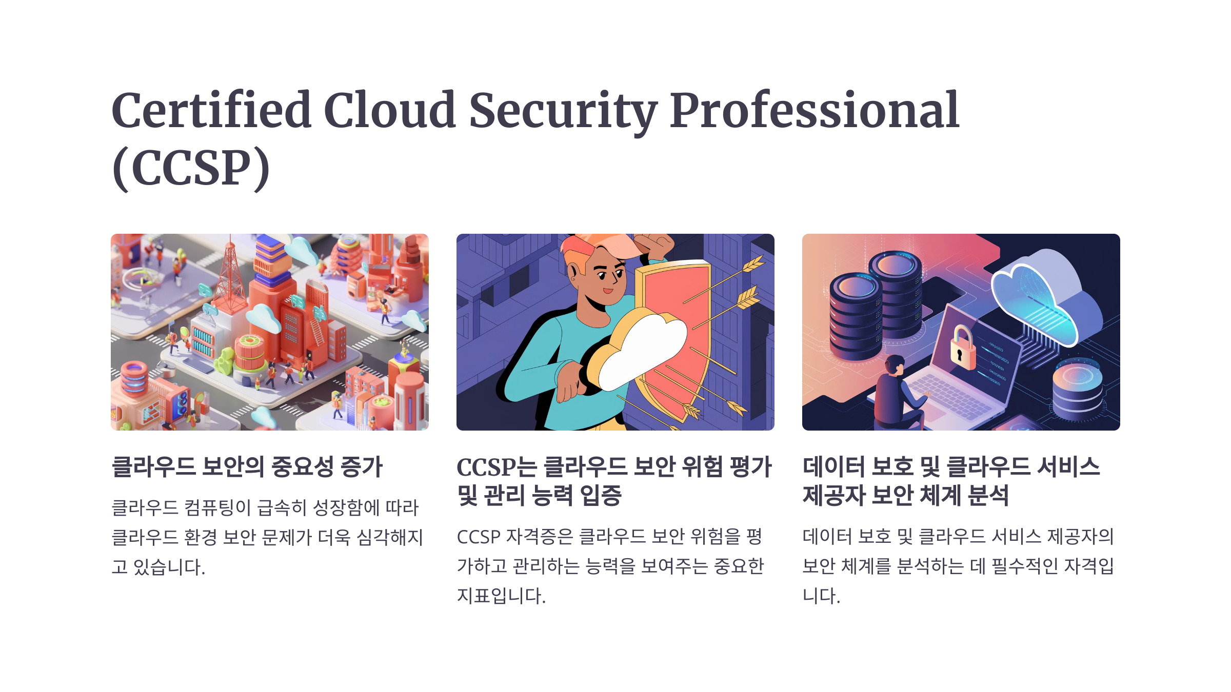 클라우드 컴퓨팅이 급속히 성장함에 따라, 클라우드 환경에서의 보안 문제도 큰 이슈로 떠오르고 있어요. **Certified Cloud Security Professional(CCSP)**는 클라우드 환경에서의 보안 위험을 평가하고 이를 관리하는 능력을 입증하는 자격증으로, 클라우드 보안 전문가로 성장하고자 하는 이들에게 매우 유망한 자격증이에요. 특히, 클라우드 환경에서 데이터를 보호하고 클라우드 서비스 제공자의 보안 체계를 분석하는 능력이 요구됩니다.