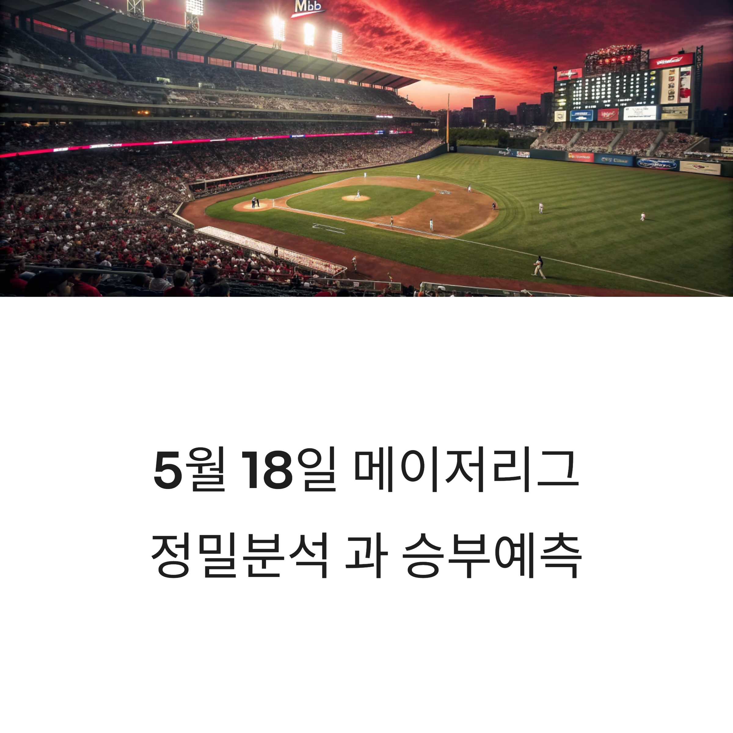 이번 콘텐츠는 2025년 5월 18일 MLB 전 경기의 승패예측과 언더/오버 분석을 모두 포함한 완성형 정리글입니다.