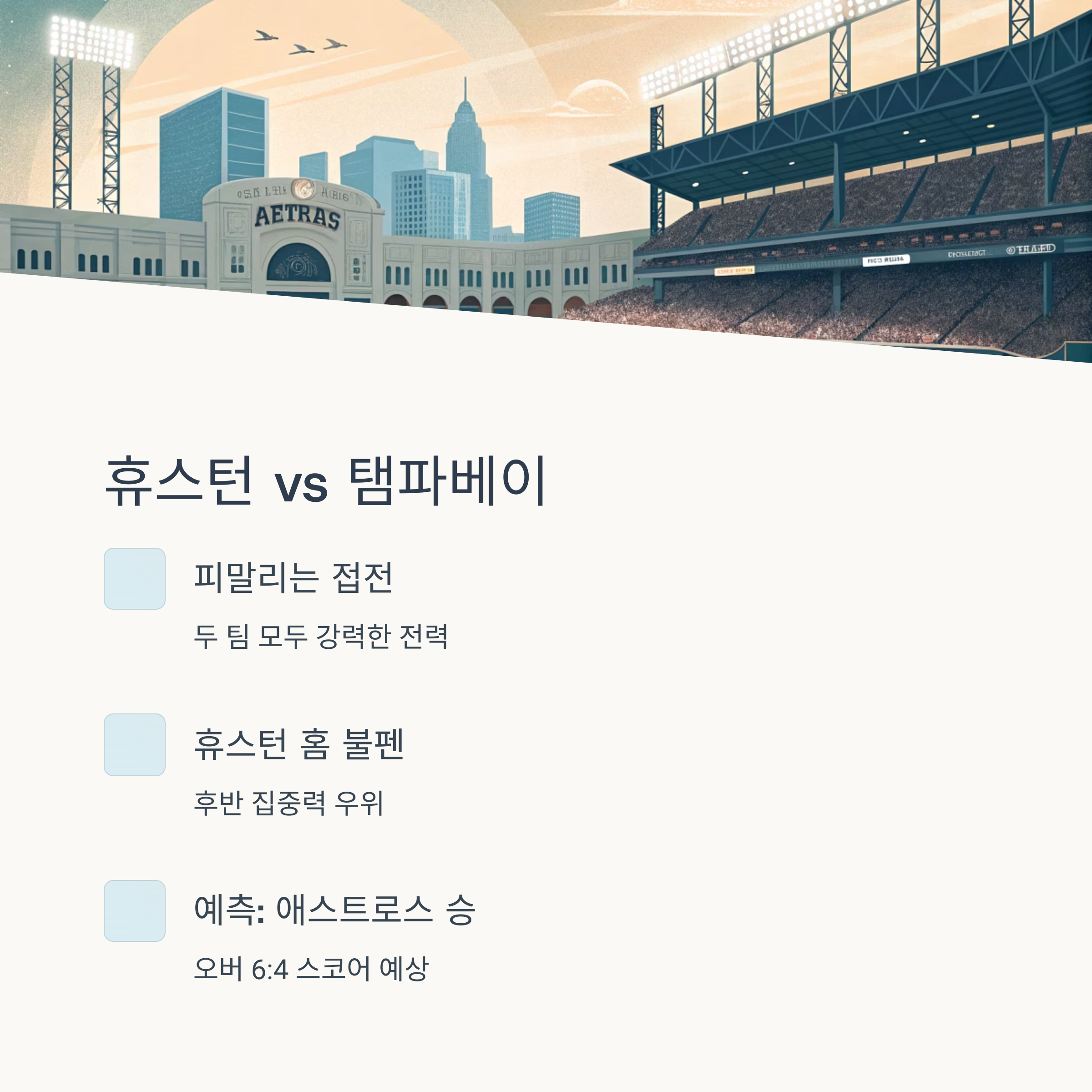 핵심 포인트: 휴스턴 홈 불펜 우위, 탬파베이 원정 타선 기복, 휴스턴 홈 타선의 상승세.