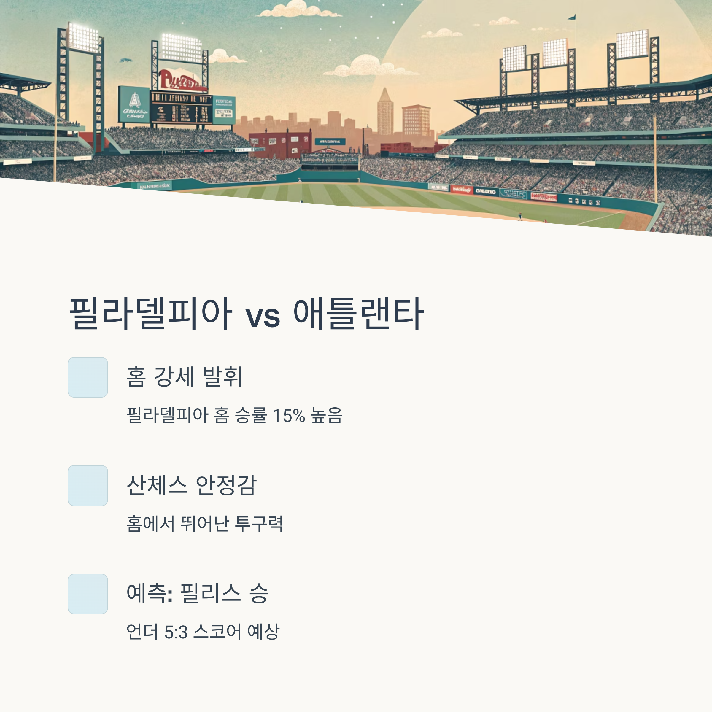 이 경기, 진짜 팬 입장에서 먼저 말해요. 필라델피아 홈 경기에서는 진짜 다릅니다! 애틀랜타도 분명 강팀이지만, 이번 시리즈 분위기가 너무 안 좋아요. 특히 필라델피아는 홈에서 유독 강한 모습을 보여주고 있잖아요? 제가 보기엔 이번에도 그 홈 강세가 제대로 발휘될 것 같아요.